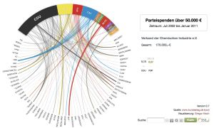 Ich finde diese Form der Visualisierung sehr ansprechend, mit Mouseover kann man sich die Namen anzeigen lassen. „So leben Deutschlands Bischöfe“ auf spiegel.de.